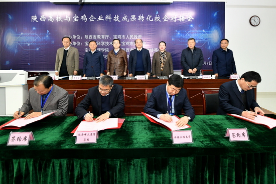 为进一步加快推进产学研深度融合,深化陕西高校与宝鸡市的校地企业合作,由陕西省教育厅、宝鸡市人民政府主办,宝鸡市科技局、宝鸡市教育局、宝鸡文理学院、陕西省高校技术转移中心及陕西高等学校科研管理协会承办的“陕西高校与宝鸡企业科技成果转化校企对接会”于12月7日在宝鸡文理学院举行。我校副校长殷永建带队,科技成果转化中心、科技处等相关人员一行参加会议,并与陕西长岭纺织机电科技有限公司签署“西安工程大学与陕...