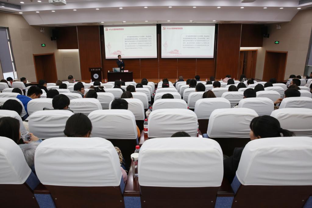 2017年12月10日,我校在临潼校区图书馆二楼报告厅举办新媒体运维人员十九大精神宣讲暨能力提升培训。本次培训由党委宣传部组织,全校100余名负责新媒体运维的师生参加了培训。