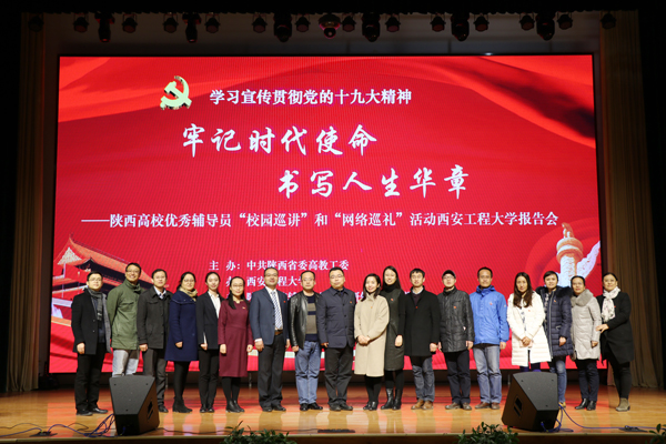 12月8日下午,由中共陕西省委高教工委主办的“学习宣传贯彻党的十九大精神—陕西高校优秀辅导员‘校园巡讲’和‘网络巡礼’活动报告会”在我校临潼校区大学生活动中心举行。